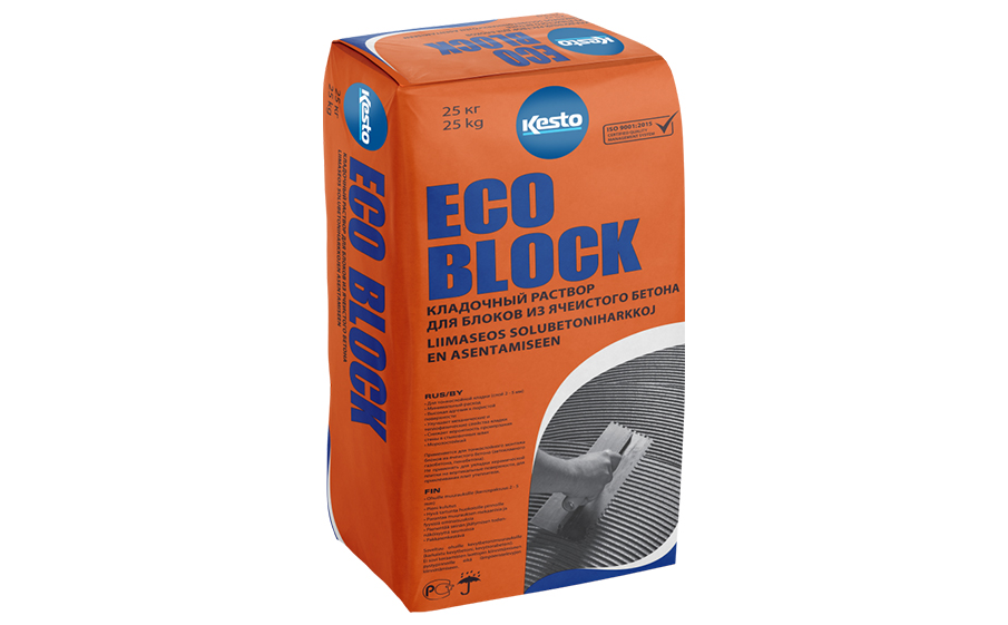 Кладочно-клеевый раствор Kesto Eco Block для ячеистого бетона, 25 кг